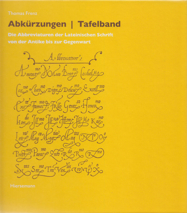 Nach wie vor lieferbar ist der Textband: Thomas Frenz: Abkürzungen. Die Abbreviaturen der Lateinischen Schrift von der Antike bis zur Gegenwart. 2010. X, 217 Seiten. Geb. ISBN 978-3-7772-1014-8. (Band 21 der Reihe «Bibliothek des Buchwesens»)